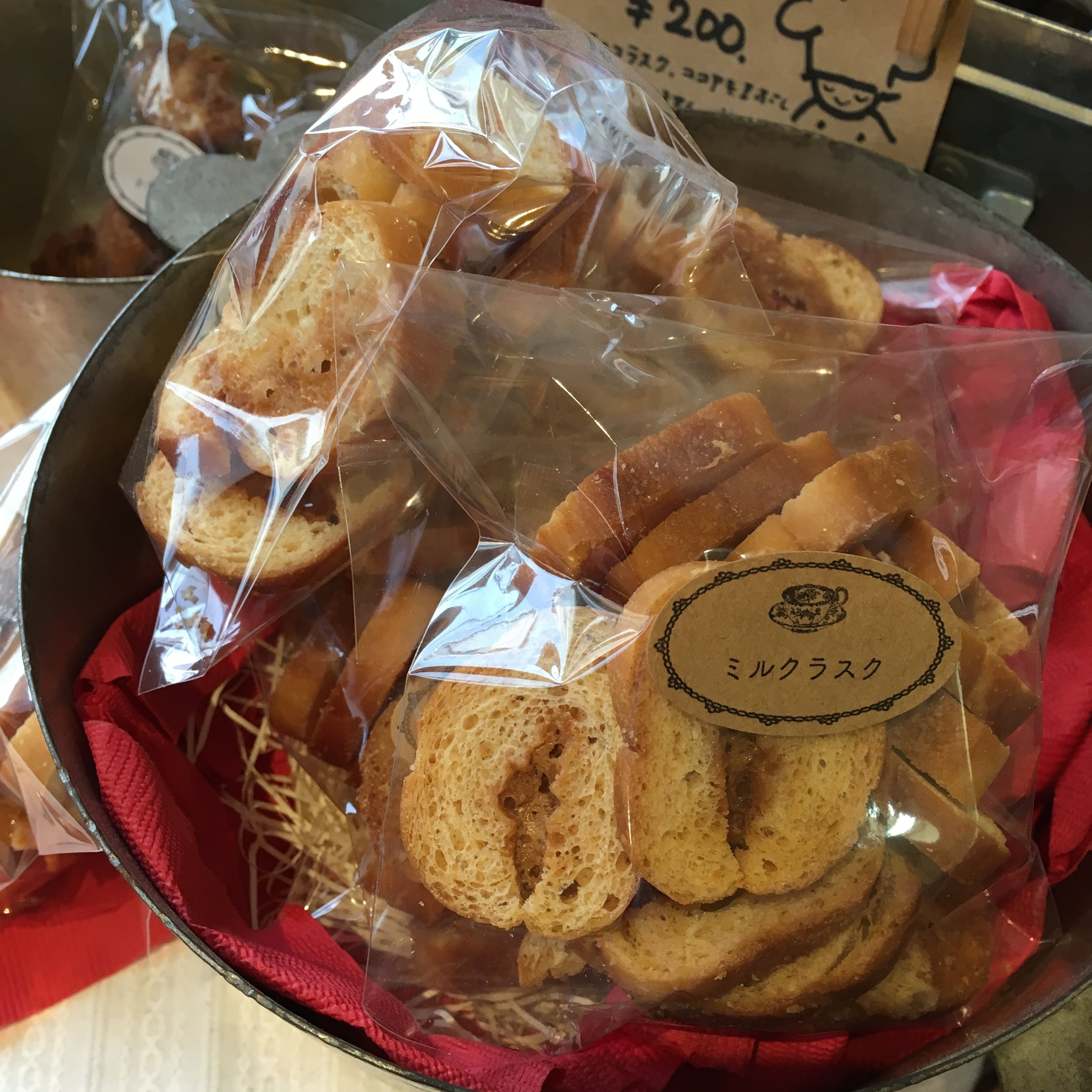 筒状にカットしてお弁当のデザートにもオススメです。また、薄切りにして130°Cのオーブンで40分程度焼いていただくと、当店でお出ししている「ミルクラスク」をお楽しみいただけます!