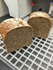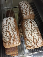 自家製サワー種を使用して発酵させたドイツパン。酸味は控えめにお作りしています。ライ麦75%、ライ押麦、オーツ押麦、小麦全粒粉、アマニといった穀物が25%入っており、ドイツでは「穀物のパン」と呼ばれている食物繊維たっぷりの美容食パンです。日が経つごとにドライな食感になりますが、比較的しっとりした食感が楽しめます。このままお召し上がりいただいても、軽くトーストして穀物の香りを楽しんでいただいても美味しくお召し上がりいただけます。食物繊維が豊富ですので、スープやお飲み物を合わせてお召し上がりいただくこと良いと思います。そして、ライ麦は女性ホルモンに似た働きがあるという事で、少しずつ長くお召し上がりいただく事をおススメさせていただいております。和洋中様々なお食事とのマッチングをお楽しみいただけるパンです。