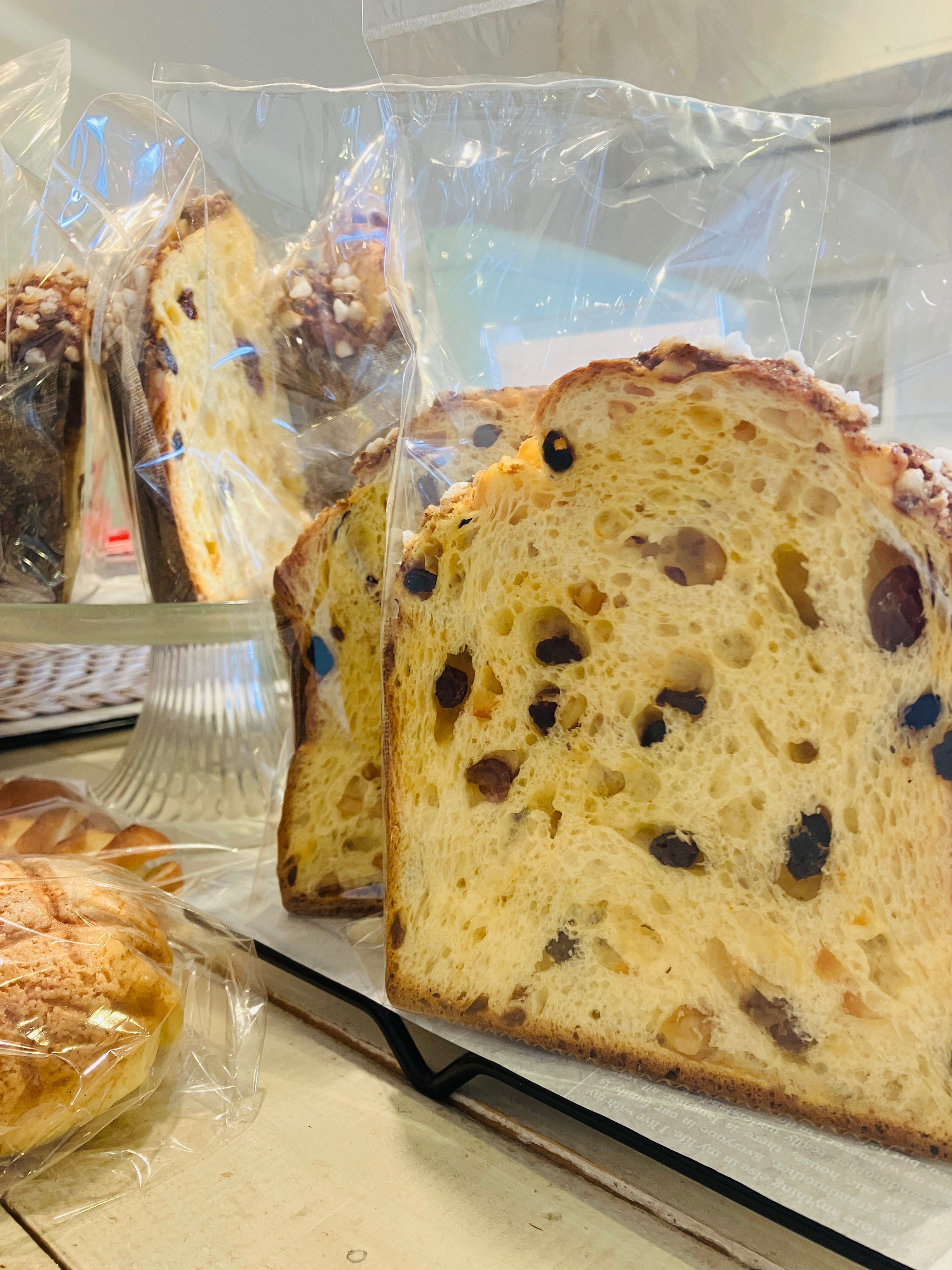 オレンジピールとレーズン入り。フルーティで香り高いイタリアの発酵菓子です。そのままでも、温めてクリームやアイスクリーム、好みのシロップを添えてお召し上がりいただきますとより美味しくお召し上がりいただけます。温めは、オーブンやトースター、電子レンジでしたら10秒程度でふわりと温めてください。温めすぎにご注意ください。お日持ちがよく、常温で保存可。